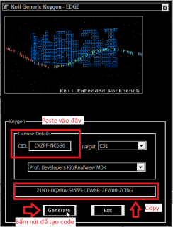 B4: Quay lại keil c paste đoạn mã code vừa tạo từ phần mềm cr@ck